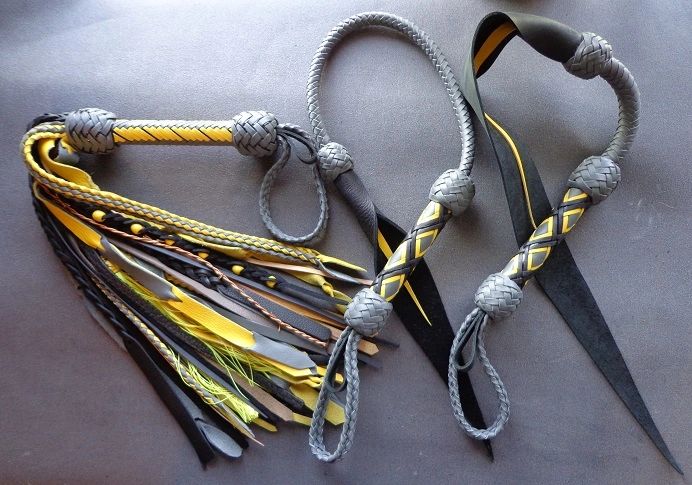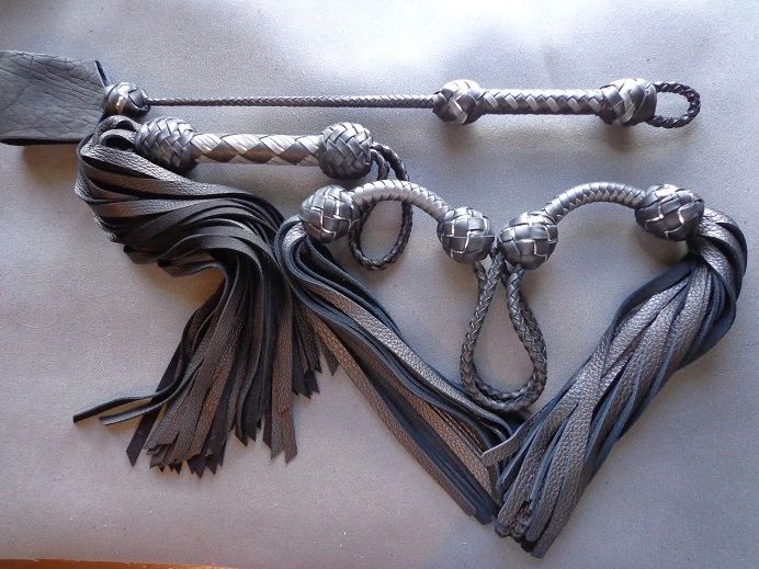 (Above) 7-piece set includes 2 enforcers, 2 flat-braided cats, 2 crops and a pussycat. Custom made April 2017. (set#009)