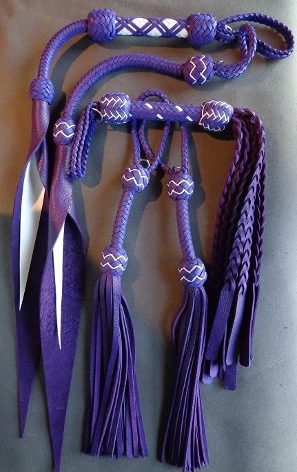 (Above) 4-piece custom set includes crop, deerskin flogger and twin Airin floggers. Custom made April, 2016. (#set015)