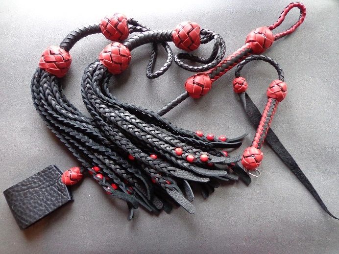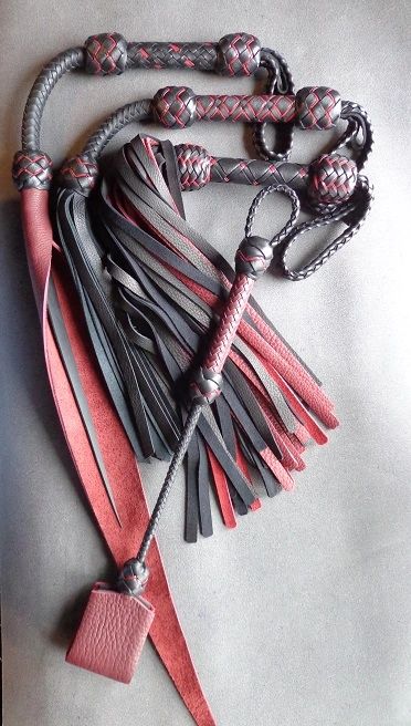 (Above) 2-piece set includes braided cat and rubber strand flogger. Custom made February, 2017. (#set011)
