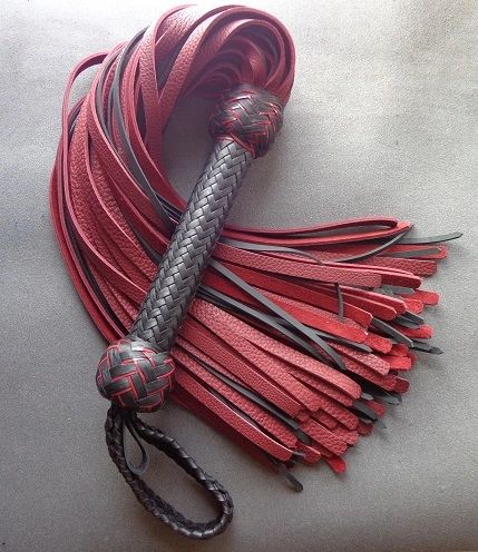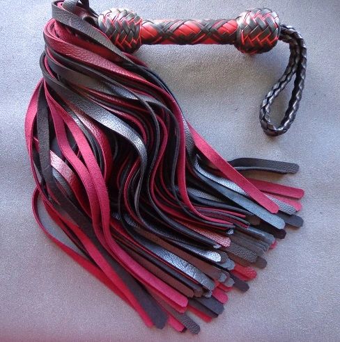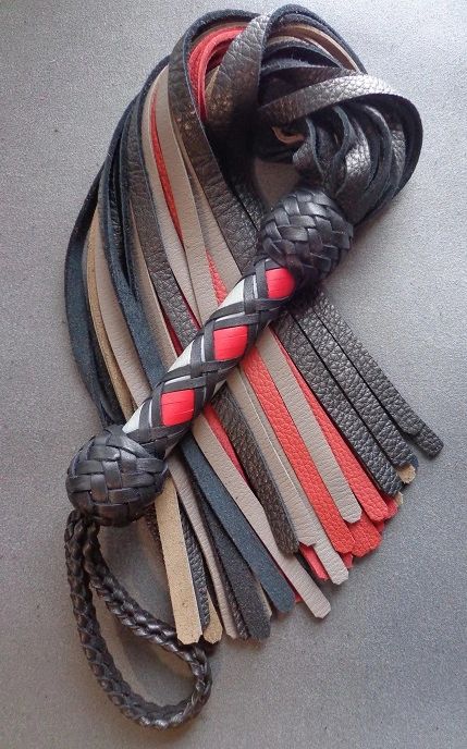 (Above) Deerskin flogger in red, grey and black. Custom made November, 2016. (#st007)